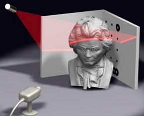 Лазерный 3D сканер является аналогом оптическому 3D сканеру. Он более простой, но работает по системе лазерного сканирования. Данный 3д сканер показывает принципиальную разницу по сравнению с оптическими сканерами и способах сканирования. Данная система работает преимущественно с малыми объектами.